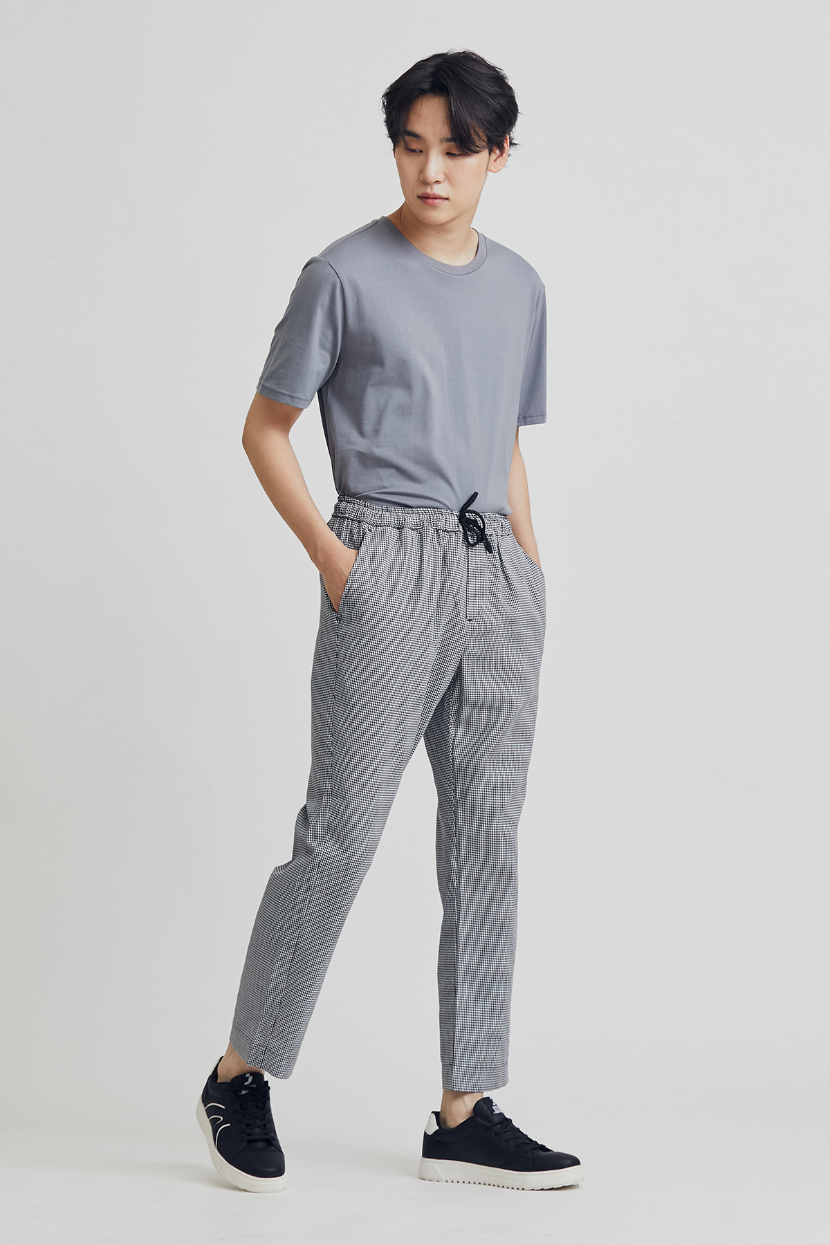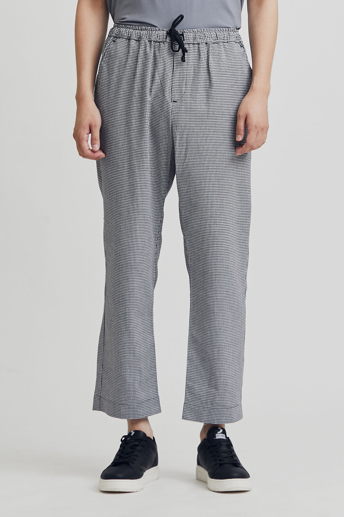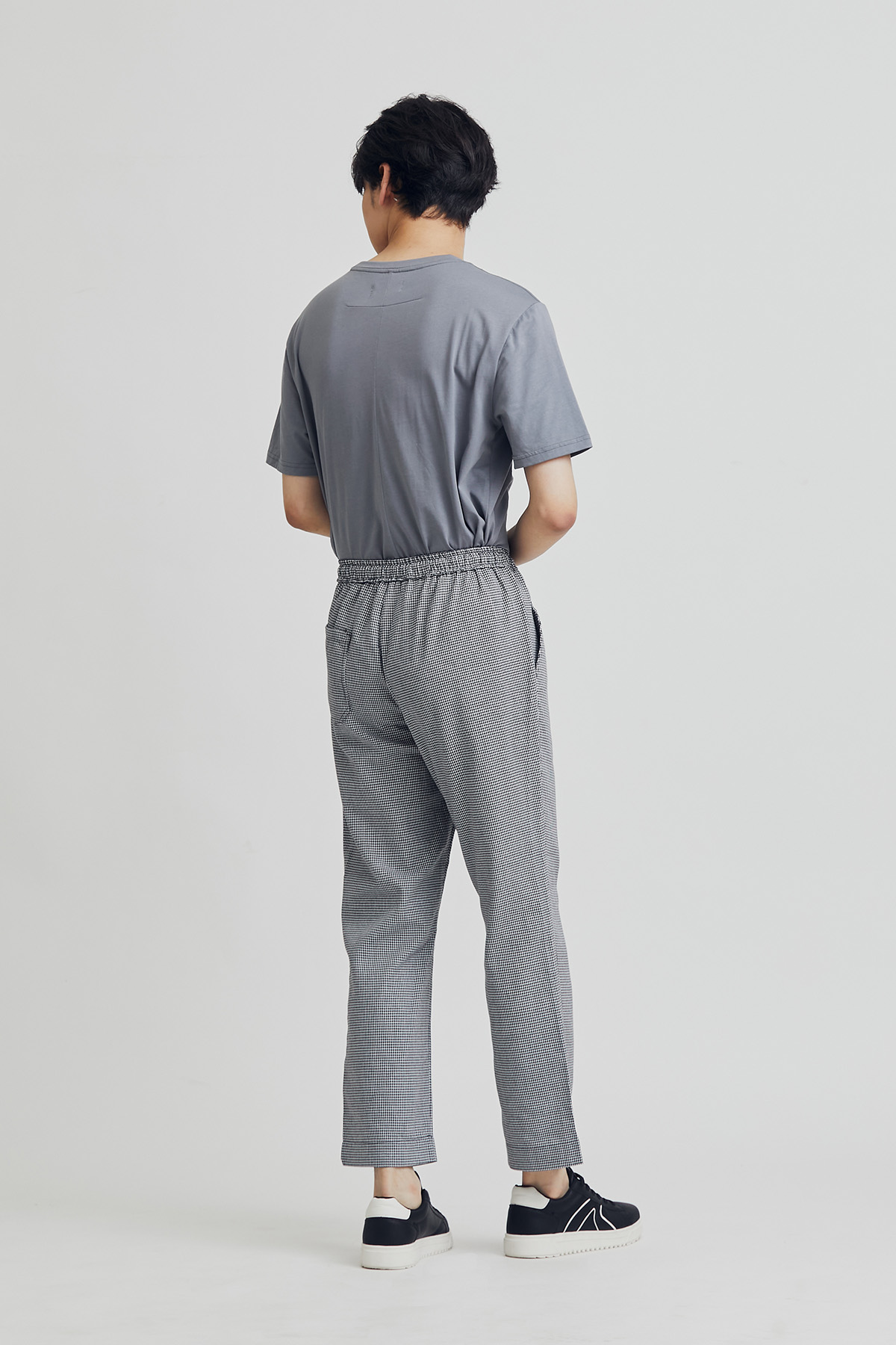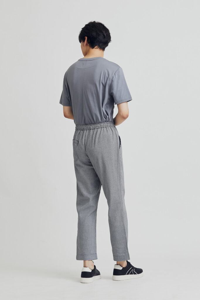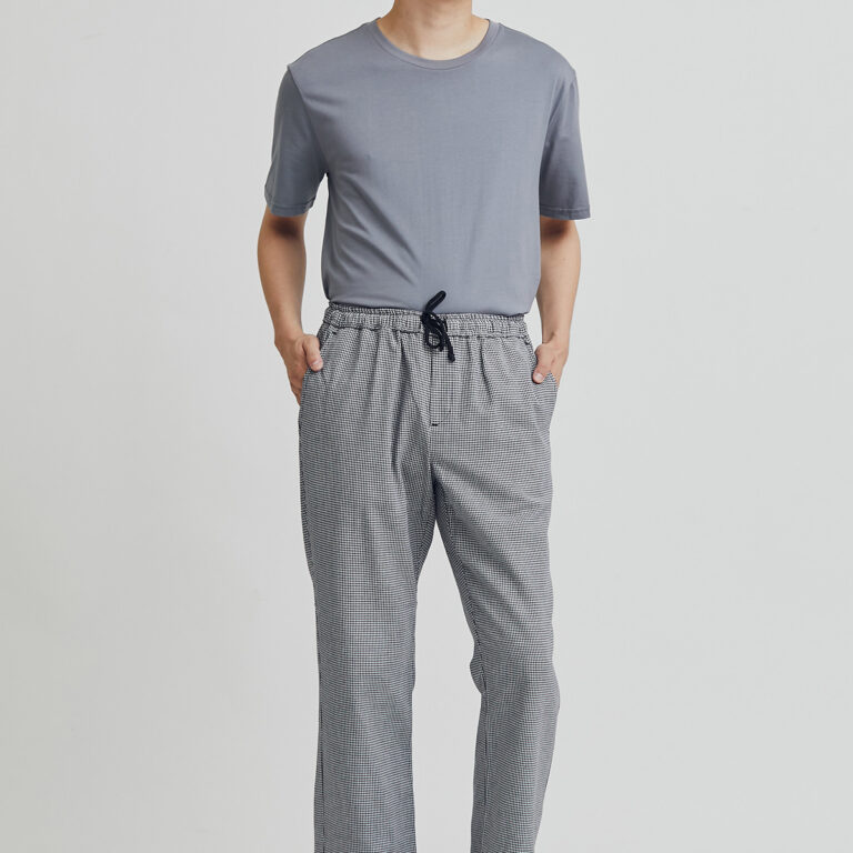 Elastic waist trousers with front and back pockets Made from 65% polyester 35% cotton