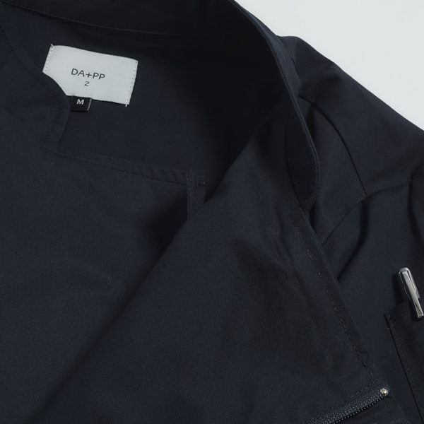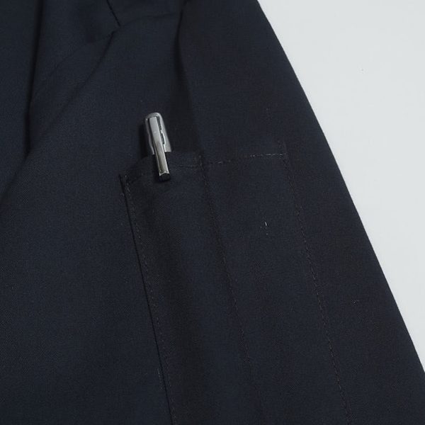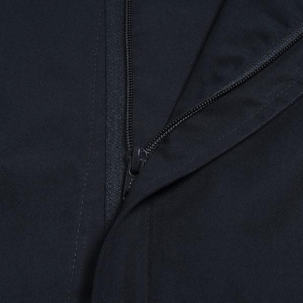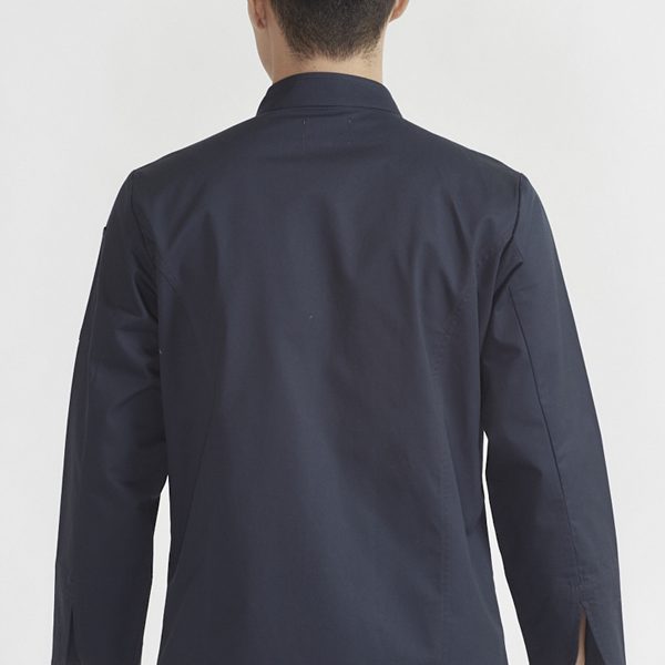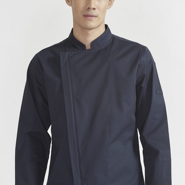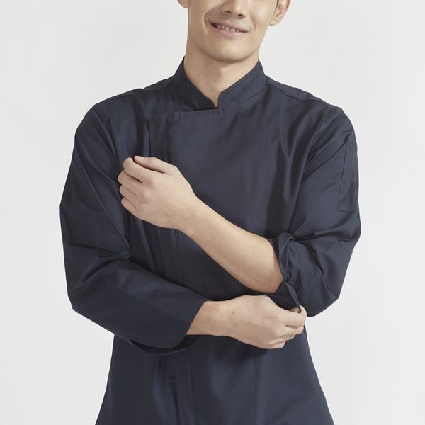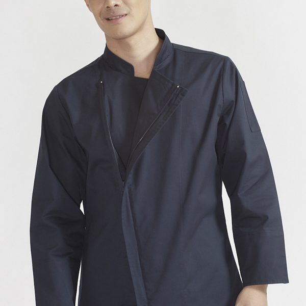 Long sleeves chef jacket with front zipper and small left arm pocket Made from 65% polyester 35% cotton