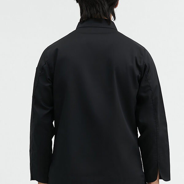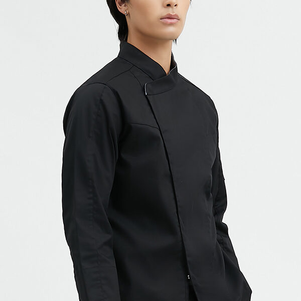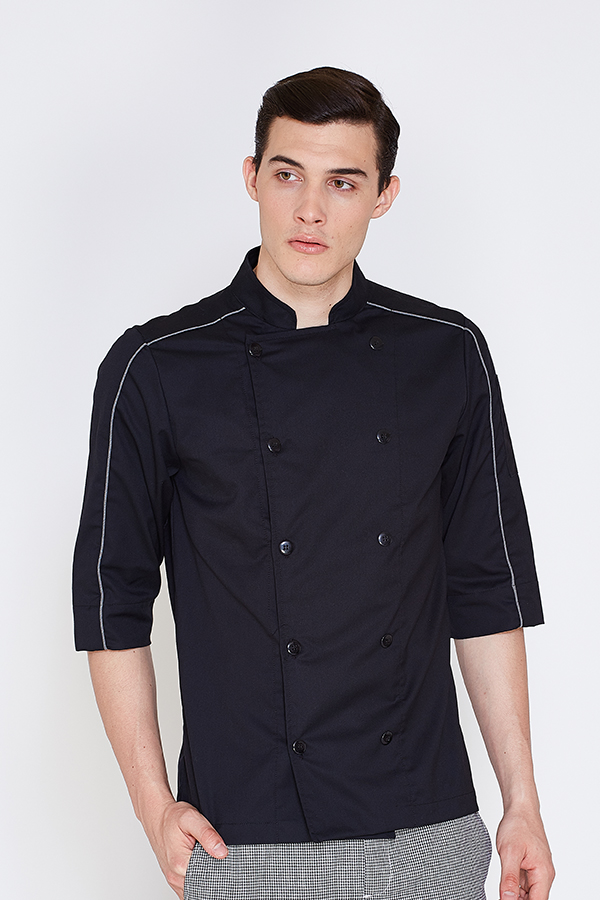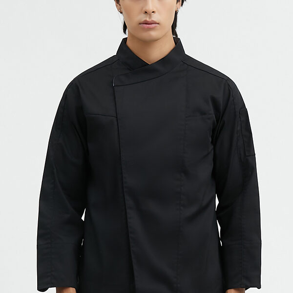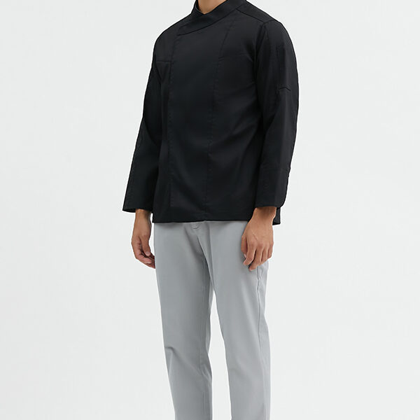Long sleeves chef coat with press buttons and small chest pocket Made from 65% polyester 35% cotton