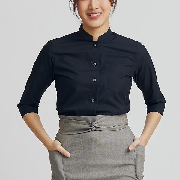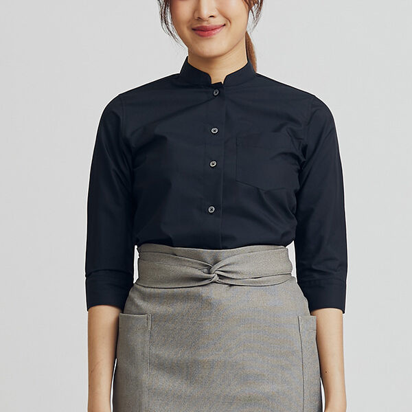 เสื้อเชิ้ตผู้หญิง คอจีน ความยาวแขนสามส่วน สามารถใส่เป็นชุดพนักงานโรงแรม หรือชุดยูนิฟอร์มพนักงานบริการได้เช่นกัน